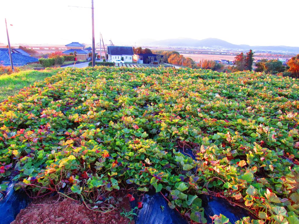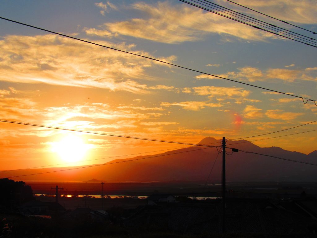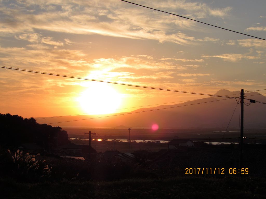 今日は、北風が冷たいです。島原半島の雲仙岳からの稜線に朝日が綺麗かったので、何枚か撮りました。又、安納芋の葉が黄色く色づきました。来週末に収穫する予定ですが、天気が心配です。収穫が楽しみです。