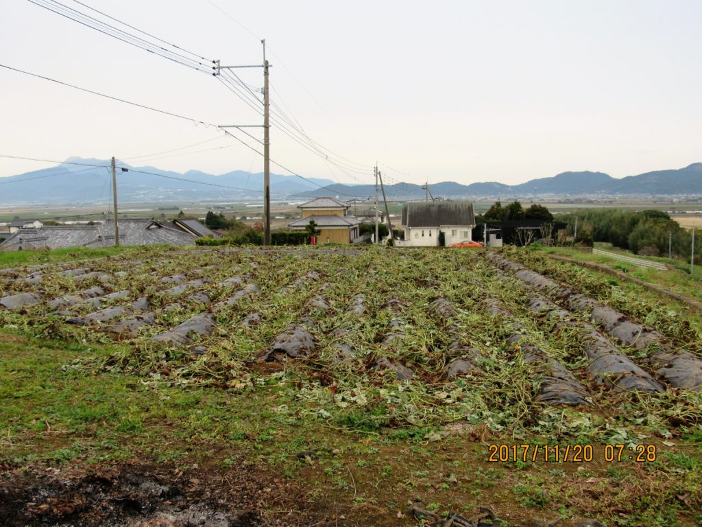 今週は大分冷え込みました。やっと安納芋の収穫です。収穫前の芋蔓切りの状況を公開します。この後、マルチを剥して、2日から3日後に収穫します。それから、冬の雲仙岳の稜線から昇る朝日と普賢岳に雲の傘ができていました。