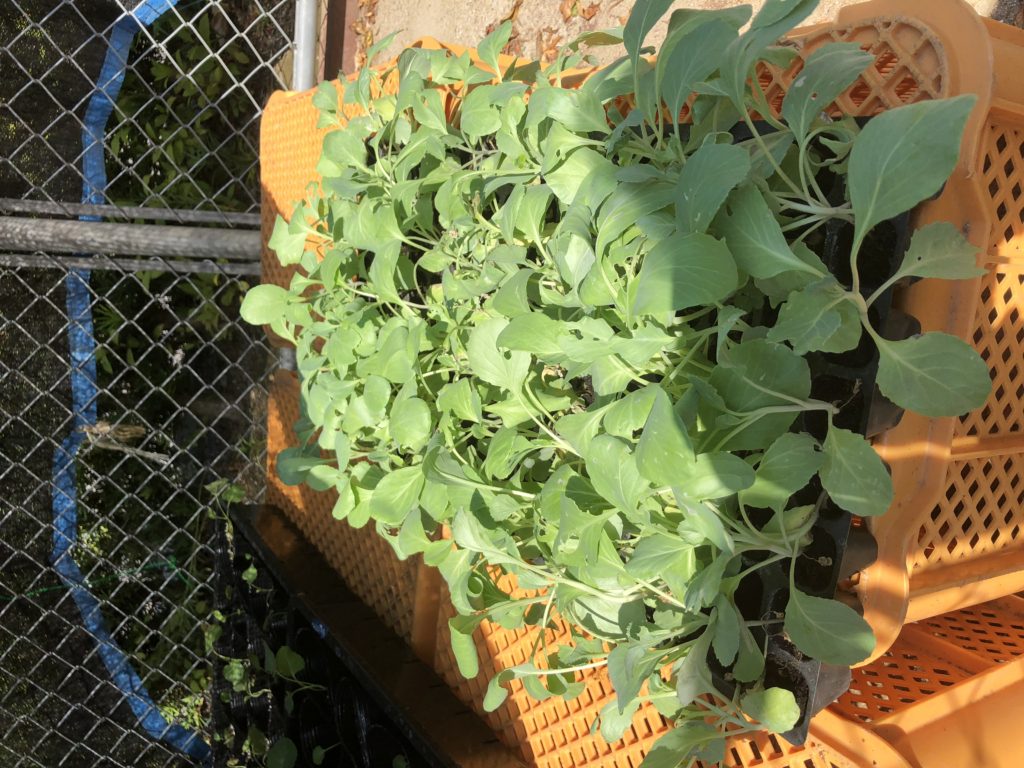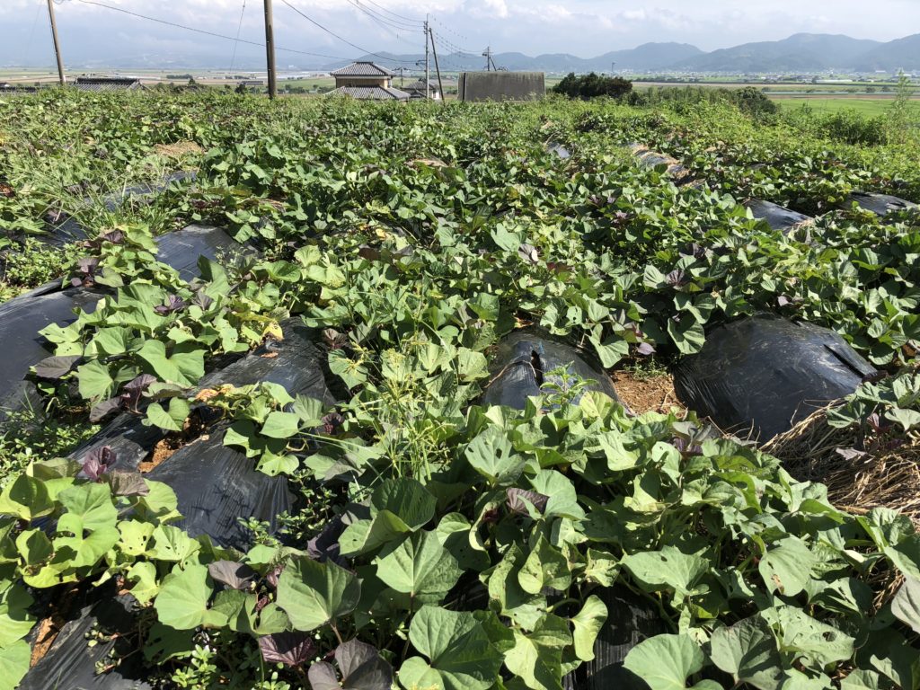 安納芋畑生育状況と極甘キャベツサトウくんの苗
