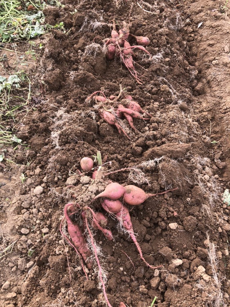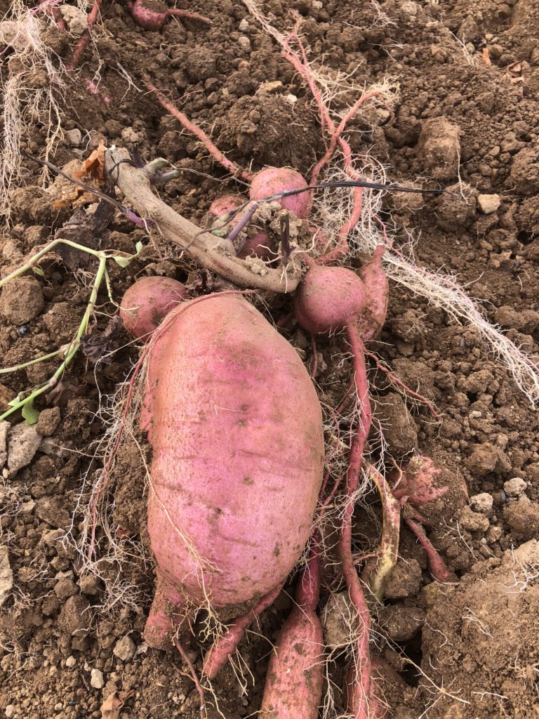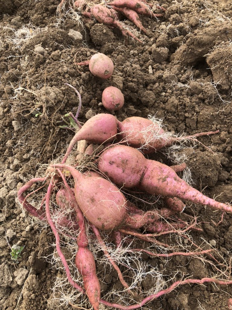 今年度の安納芋収穫を始めました。今日は1か所収穫しました。今週中に全て収穫終了です。今年は芋苗植え付け後直ぐに7月に台風が来て、その後大雨になり、植え付けた苗が根がつく前だったので、飛ばされたり、流されたりして、被害にあいました。それから、強い日照りが続き散水を頻繁にする日日でしたが、やっと収穫することができます。お陰様で、大きく育ちました。大木のはかぼちゃみたいのがありました。後の畑がたのしもであり不安でもあります。今年は注文が多く対応できるか不安です。今日の収穫画像を投稿します。