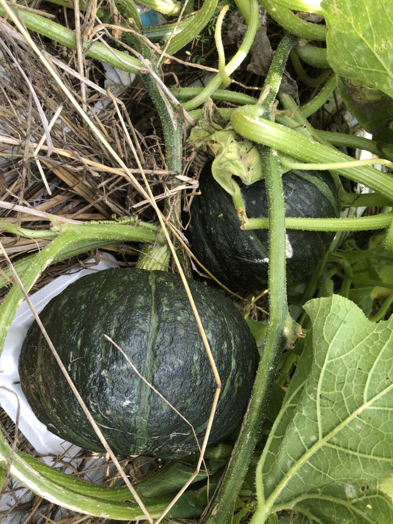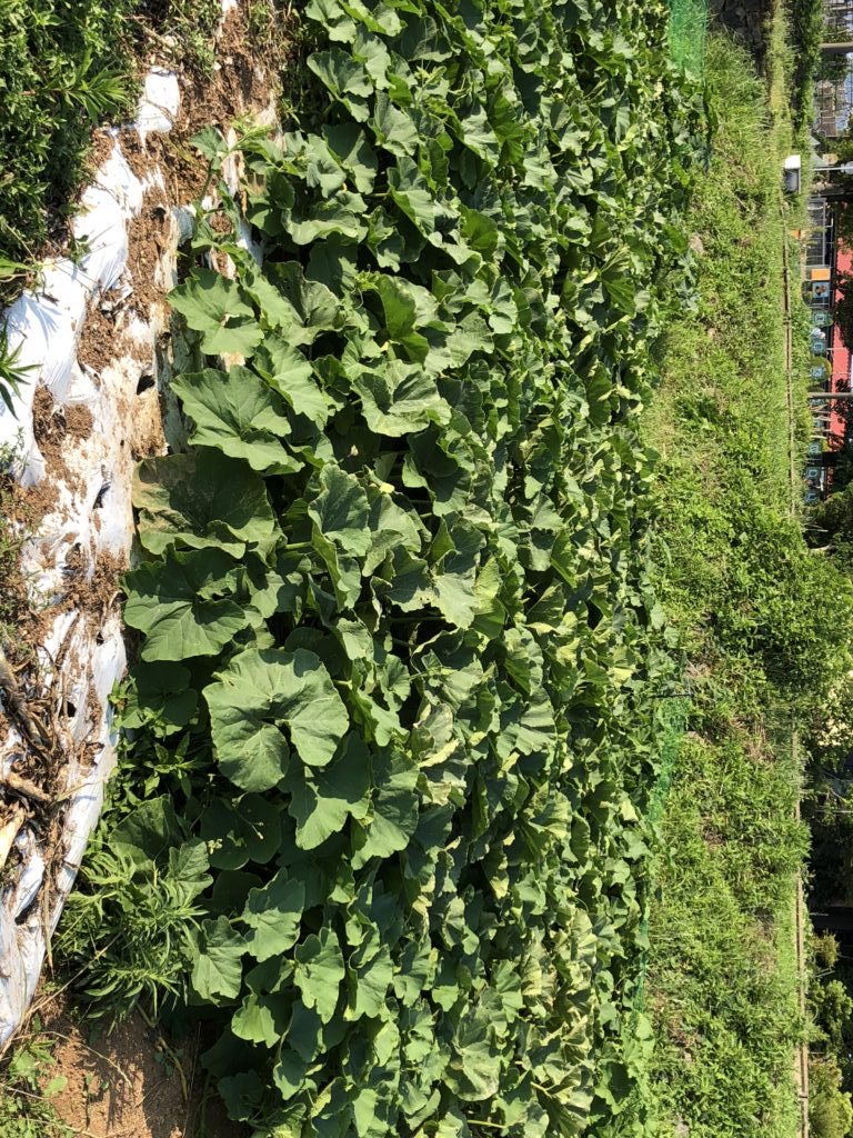 糖度が高いほっこりカボチャ133の蔓がすごい早い成長で伸びています。ほっこりカボチャも50個程出来ています。先日カボチャの下にプラスチックの皿を敷きました。まだまだ小さいのが出来ていて更に皿を敷いていこうと思います。今月下旬から少しずつ収穫できると思います。
