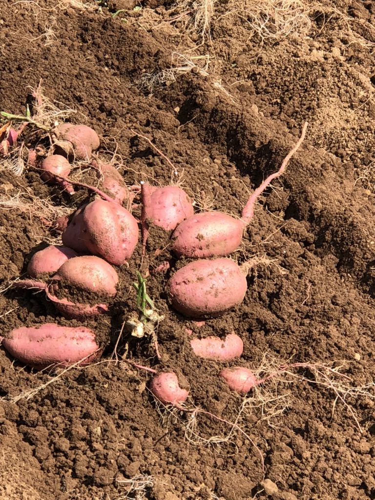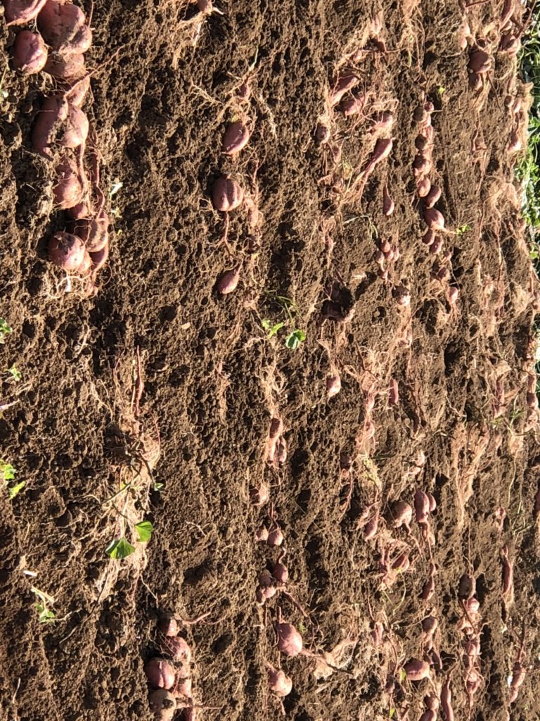 今年度安納芋の収穫開始しました。今日は秋晴れの天気で、涼しい風も吹いて作業も暑くなくスムーズに進みました。今日は2か所の収穫でコンテナ50個でした。昨年は形が悪く割れている芋が多かったですが、今年は形大きさも良いのが収穫出来ました。後8か所の収穫が残っています。天気予報を見ながら作業の日を決めていきます。11月11日頃から出荷となります。是非、ふるさと納税の「さとふるサイト」で長崎県諫早市を見て頂き注文をお願いします。10,000円寄付をすると5k(2,000円)で購入できます。残り8,000は還付されます。市役所税務課が手続きをしてくれますので連絡してください。