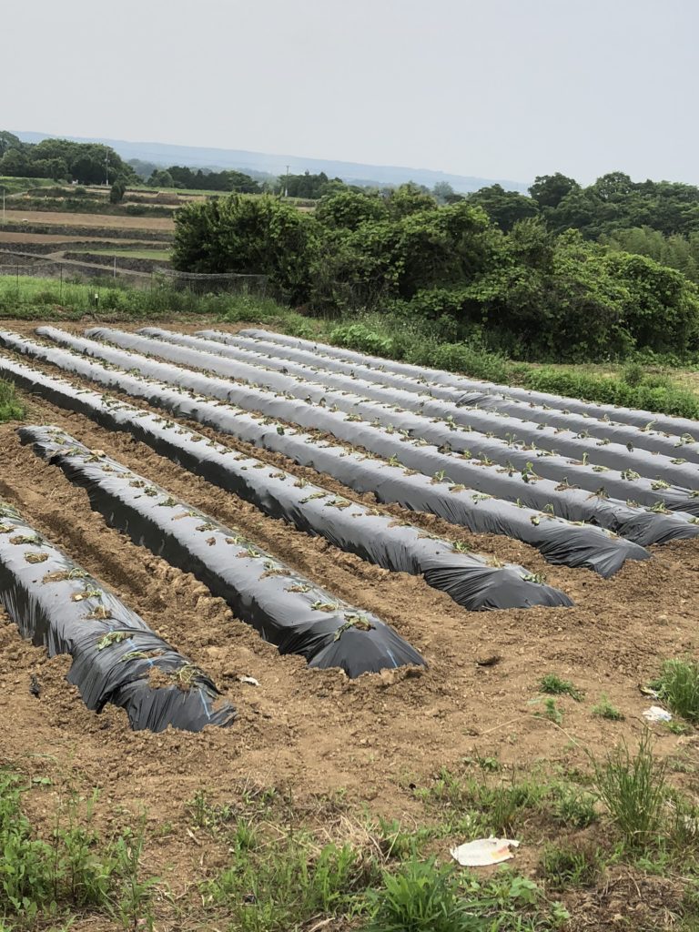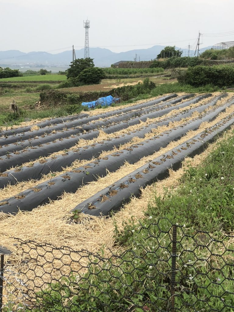 2020年度の安納芋の植え付けが、5月29日で終了しました。天気も良く順調に植え付けが出来ました。﨑年はイノシシの被害にあったので、今年は、芋畑に周りに定置網用のビニール製の網を設置しました。又、畝間に麦わらを敷き詰めよ予定です。これにより雑草を抑えて蔓も畝以外に値が付きにくくしました。長崎は来週から雨模様です。梅雨も入りもちかいです。又、今年は菊芋栽培も始めました。これは、糖尿病対策でインスリンの働きを高めるのに良いイヌリンと言う成分が含まれていて、血糖値の上昇を抑える働きをします。又、食物繊維・腸内環境をよくする成分も含まれています。形は生姜のようになっています。是非、お試し頂ければと思います。