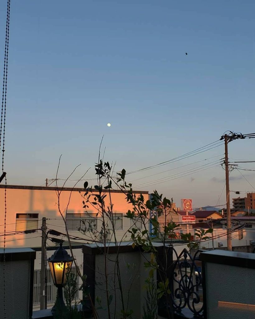 月を見ながらお茶して
