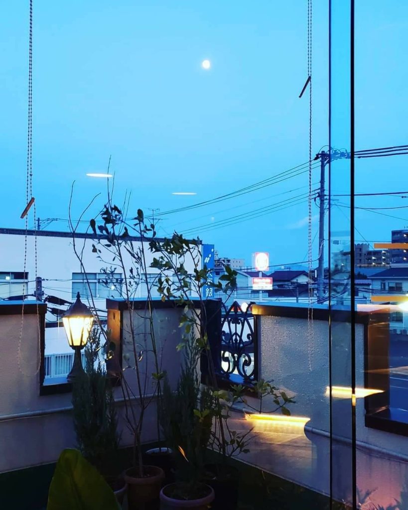 間接照明で、ずっと月を見ながらの
