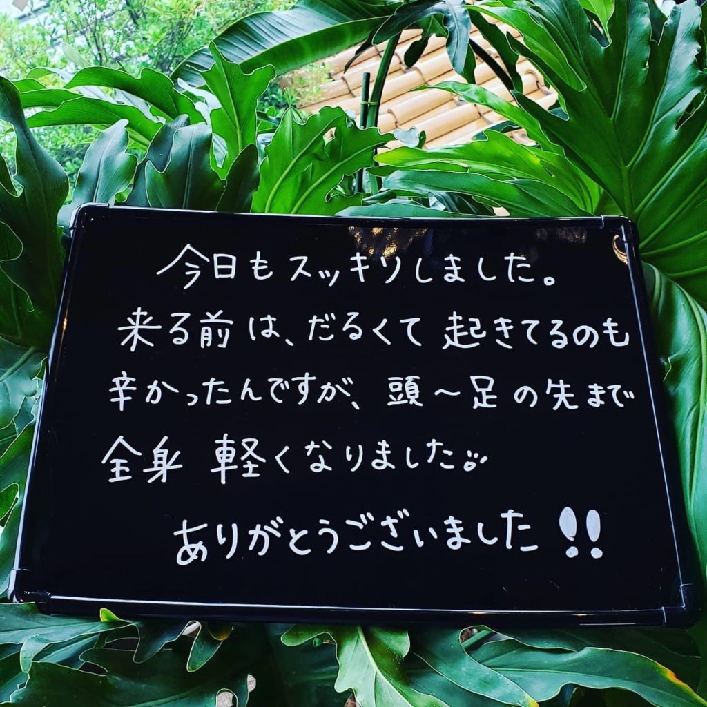 【来る前はだるくて起きてるのも辛かったんですが、頭〜足の先まで全身軽くなりました。】