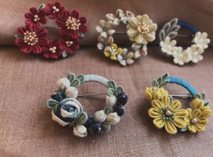 つまみ細工で可愛いお花のアクセサリーを作っています。