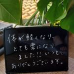 2020年5月10日 / 最終更新日時 : 2020年5月12日 belfiore さとう式リンパケア 【リラックスできました。ありがとうございます😊】タイ古式マッサージ さとう式リンパケア 郡山市 ベルフィオーレセイ 🎇お写真はタイ古式マッサージ·40分+MRT20分コースで木曜日のEさんです😉 金曜日は 🎇マッサージ80分+MRT20分のHさんはふくらはぎがはっていましま […]