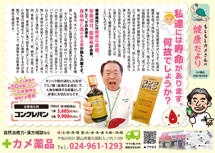 [カメ薬品が約50年間にわたって、この栄養剤を推奨する理由]