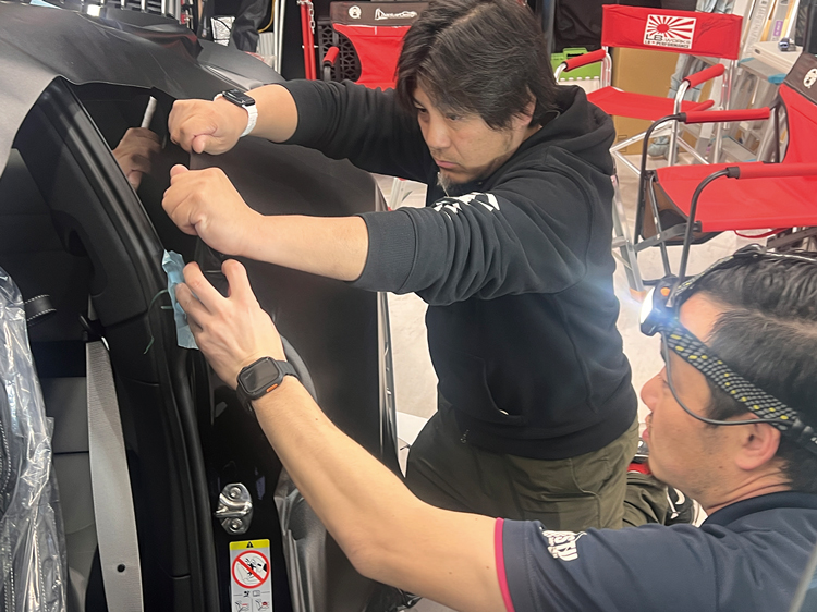 塗装せずにカーボン調、メタリック、マットカラーなど多彩な仕上げができ、剥がせば元に戻せるので車の価値も保てます。ワンポイントの企業ロゴやオリジナルステッカーの印刷・施工もおまかせください。