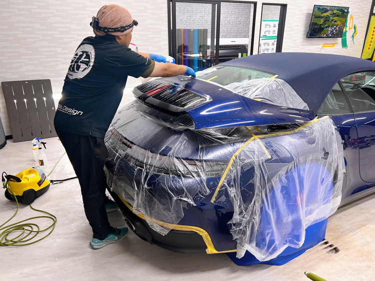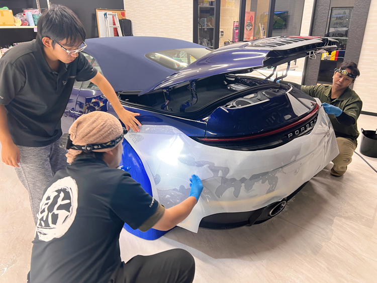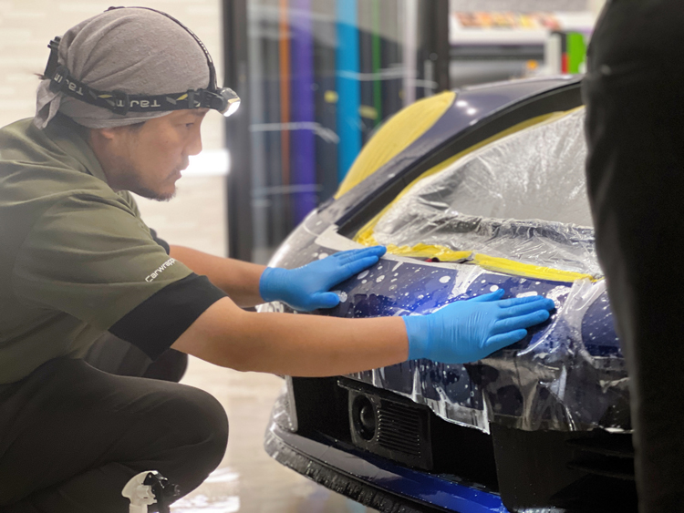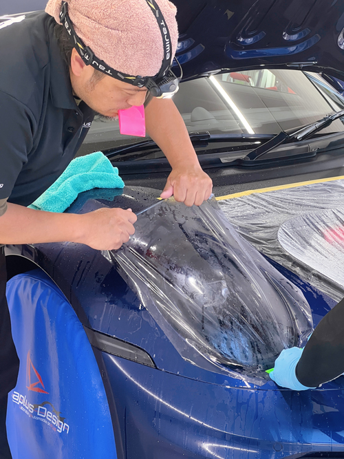 今回は車全体に透明なフィルムを貼るフルプロテクションフィルム施工。