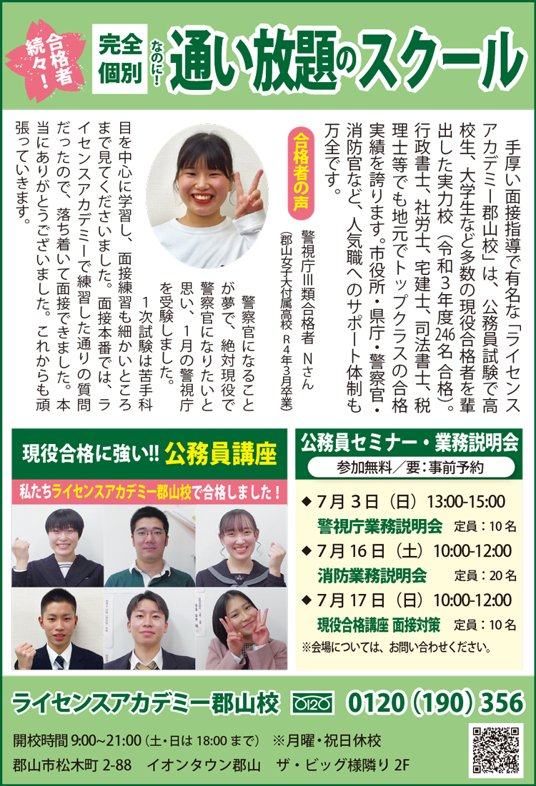 警察官になることが夢で、絶対現役で警察官になりたいと思い、1月の警視庁を受験しました。1次試験は苦手科目を中心に学習し、面接練習も細かいところまで見てくださいました。面接本番では、ライセンスアカデミーで練習した通りの質問だったので、落ち着いて面接できました。本当にありがとうございました。これからも頑張っていきます。