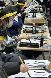 いつもの教室とは違う雰囲気で、席書開始前はドキドキです。