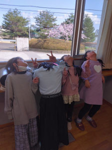 教室入り口の桜が見頃になり、そろばん教室のみんなで桜を見ました。