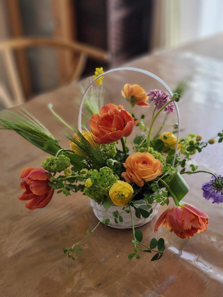 《春本番!ビタミンカラーのバスケットアレンジレッスンです》