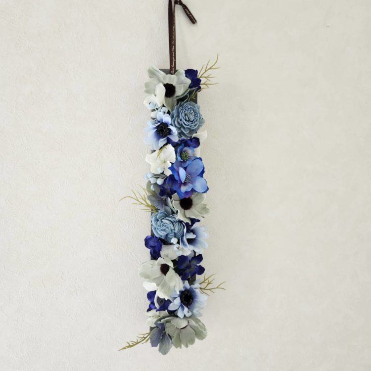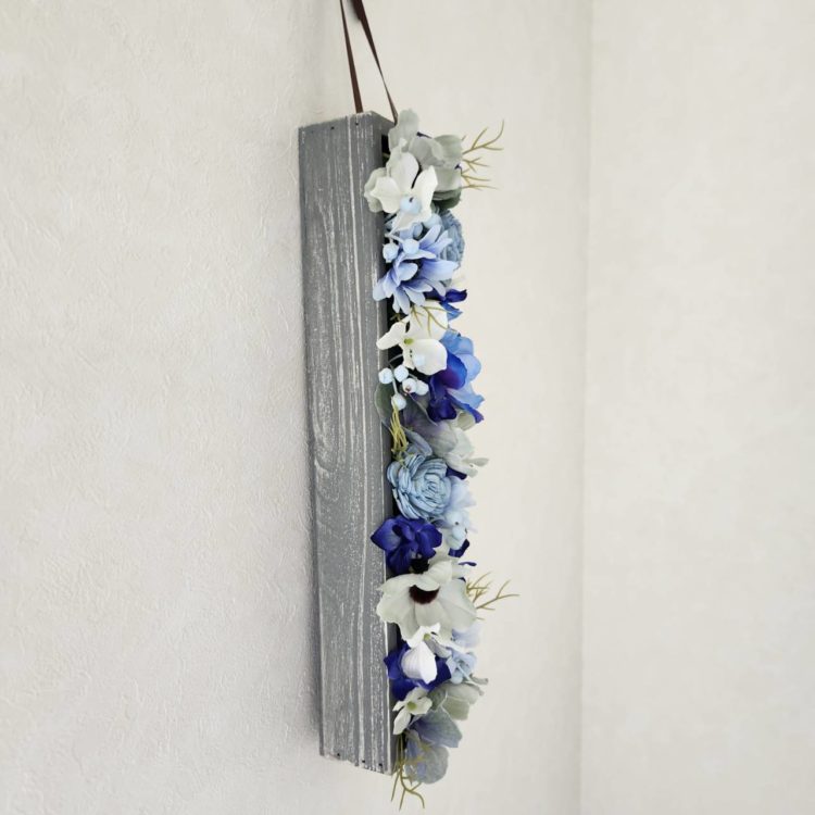 シャビーシックグレイのWood boxに、ブルー系をアレンジ。オフホワイト、スモーキーアイスブルー、ブルーのグラデーションでフラットに。