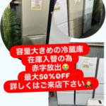 2025年7月10日 / 最終更新日時 : 2025年7月10日 stuff ブログ 容量大きめの冷蔵庫を入替のため最大半額で 容量大きめの冷蔵庫を入替のため最大半額で 販売します! 赤字です😭 今の時期買い替えする方が増えるのでこの機会に是非ご検討下さい! 詳しい金額などは店頭にお越し下さい🙇♂️ ご来店お待ちしております🙌 【無料】出張買取 […]