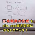 2024年5月25日 / 最終更新日時 : 2024年5月25日 sato お知らせ 三角関数の合成、sinは簡単だけどcosはどうするんだっけ…という疑問を解決!一つの図で両方同時に求めるテクニックを紹介します。 #福島県 #郡山市 #佐藤塾 #学習塾 #高校1年生 #高校2年生 #数学 #三角関数の合成 #1分授業 三角関数の合成、sinは簡単だけどcosはどうするんだっけ…という疑問を解決!一つの図で両方同時に求めるテクニックを紹介します。 #福島県 #郡山市 #佐藤塾 #学習塾 #高校1年生 #高校2年生 #数学 #三角関数の合 […]