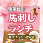 2024年9月7日 / 最終更新日時 : 2024年9月7日 stylekoriyama ブログ【会津ブランド馬刺し専門店 大久保商店】最高級の会津ブランド馬刺しを伝統の辛子味噌と地酒香る塩で食す 【会津ブランド馬刺し専門店 大久保商店】最高級の会津ブランド馬刺しを伝統の辛子味噌と地酒香る塩で食す 会津ブランド馬刺しランチ 2,480円(税込) 今や日本を代表する馬肉の産地・会津地方。その最高級馬刺しを猪苗代エリア […]